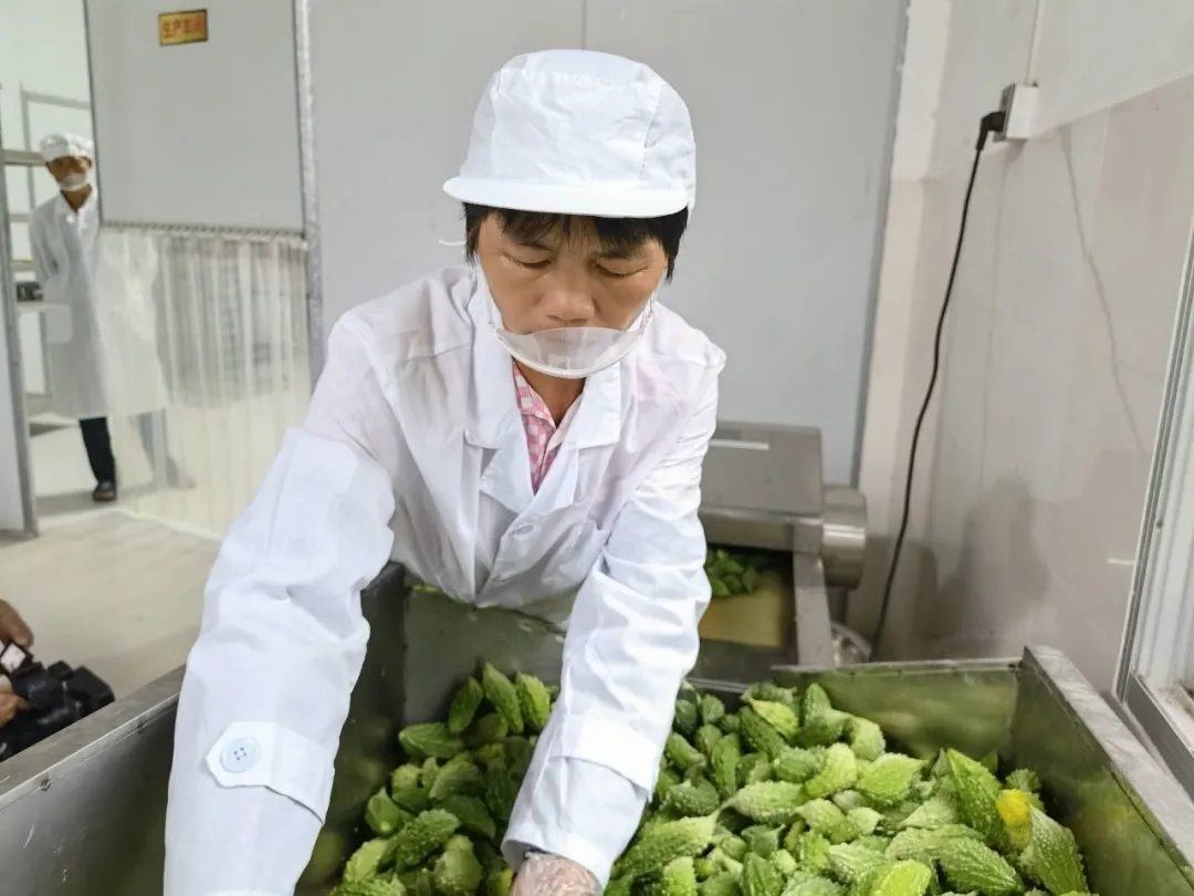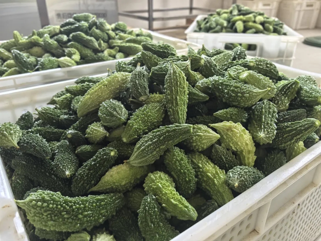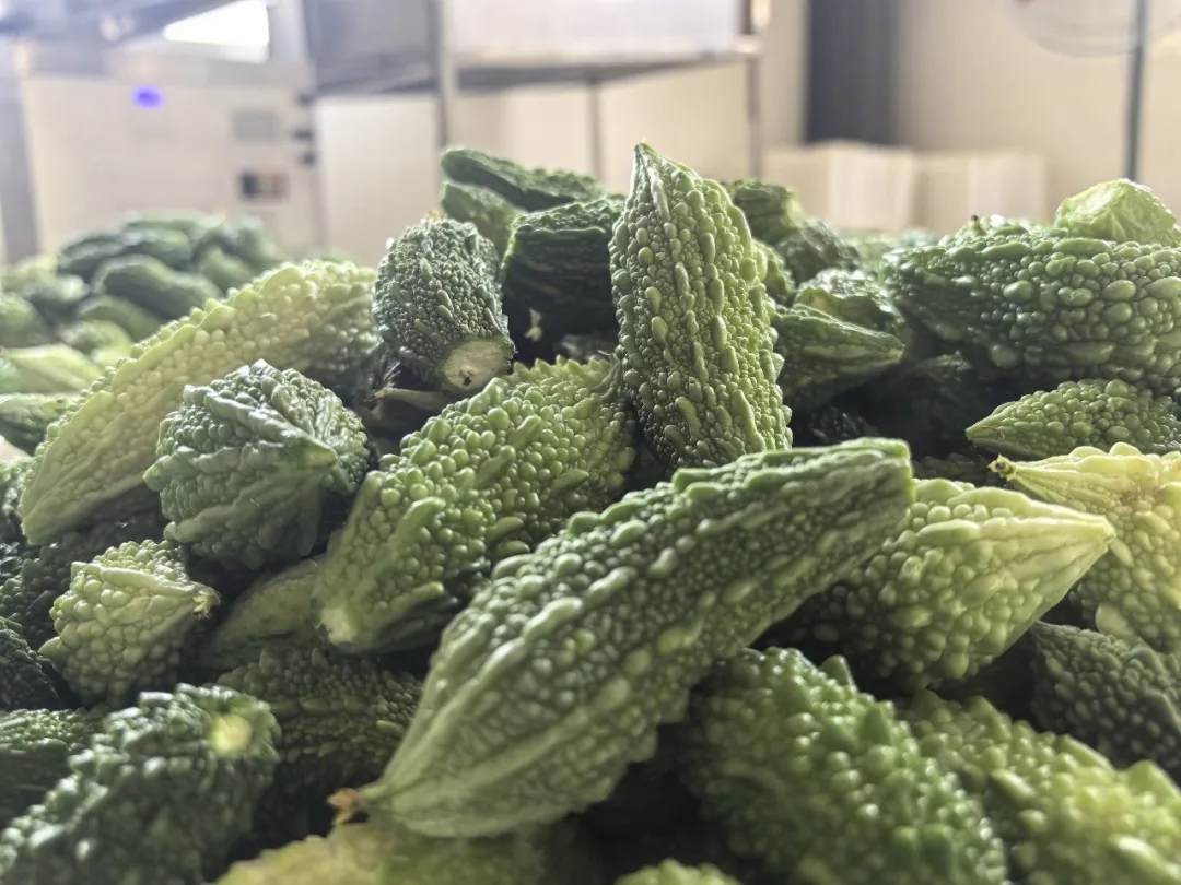 新鲜的苦瓜凭借着独特的口感和高营养价值,成为各大饭店的“抢手货”。而在农场的加工车间里,另一批山苦瓜则开启了深加工之旅。早在2013年,蔡旸晖就开始思考如何突破鲜瓜的季节限制提升苦瓜的附加值、延长“保鲜期”、拓展市场空间。于是,他将目光投向了苦瓜深加工——苦瓜茶。
