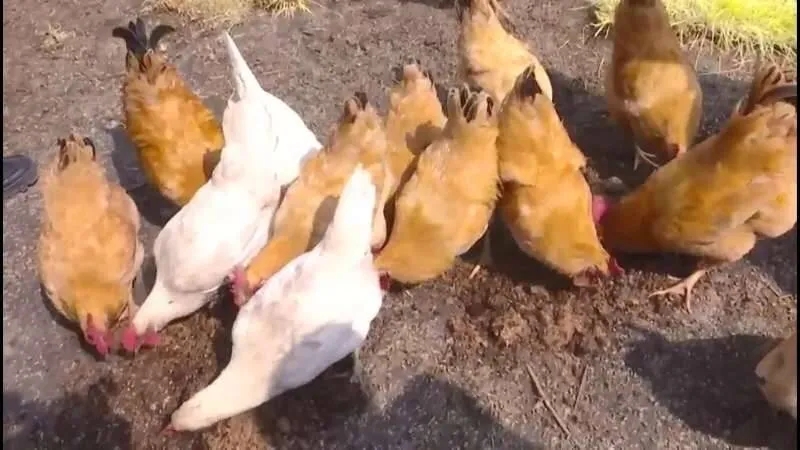 瓜田杂草单靠虫子自然消耗不完,这一点农场自有妙招。每天清晨,工人们会将从苦瓜地里收割的杂草运往农场的微农场生态实验室。在那里,近200只家禽正翘首以盼,这些新鲜杂草便是它们的美味伙食。